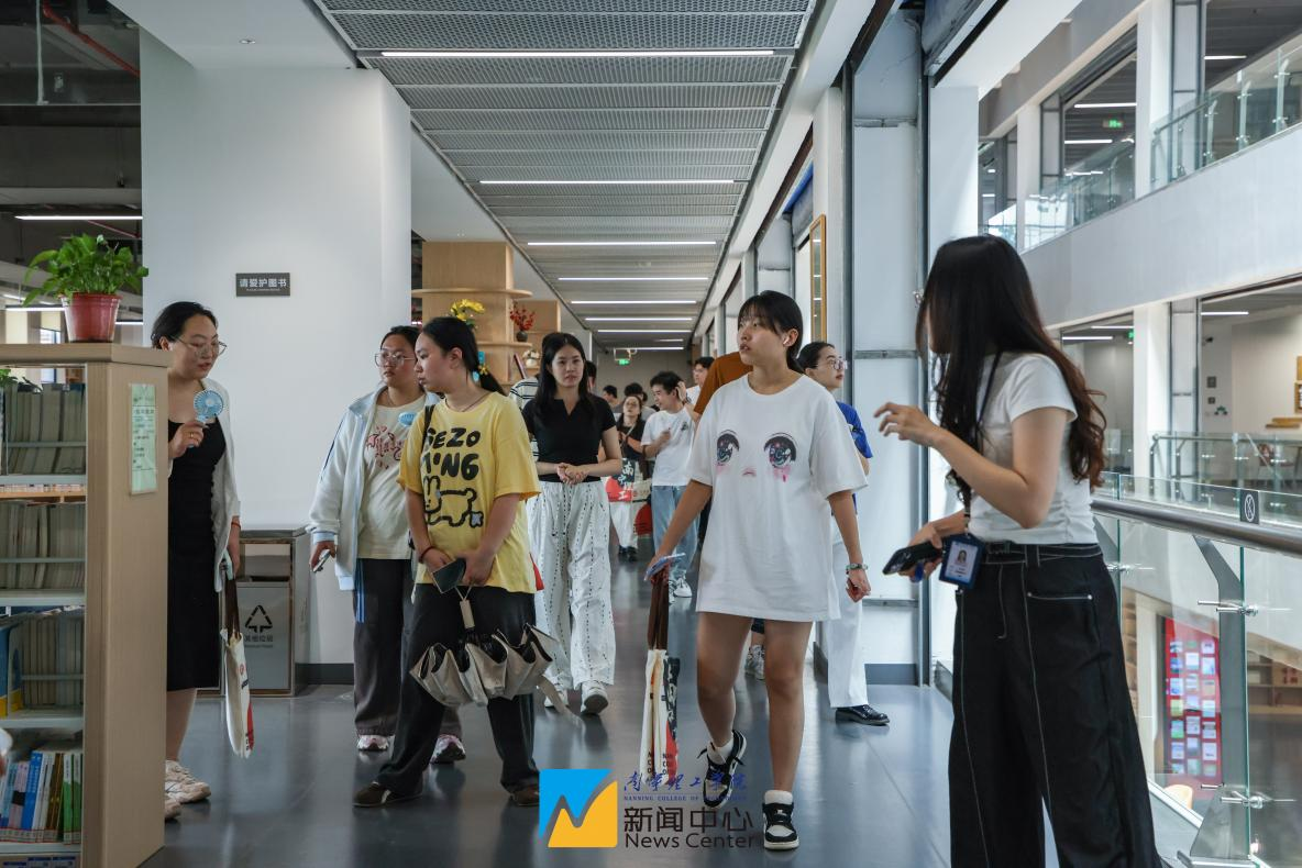 紧接着,参观团队走进学校图书馆。在馆内讲解员的引导下,同学们了解了藏书分布、电子资源检索系统及考研自习区以及学校特色的非遗文化展区等服务功能。不少考生表示,图书馆安静浓厚的学习氛围和智能化设施给自己留下了深刻印象。